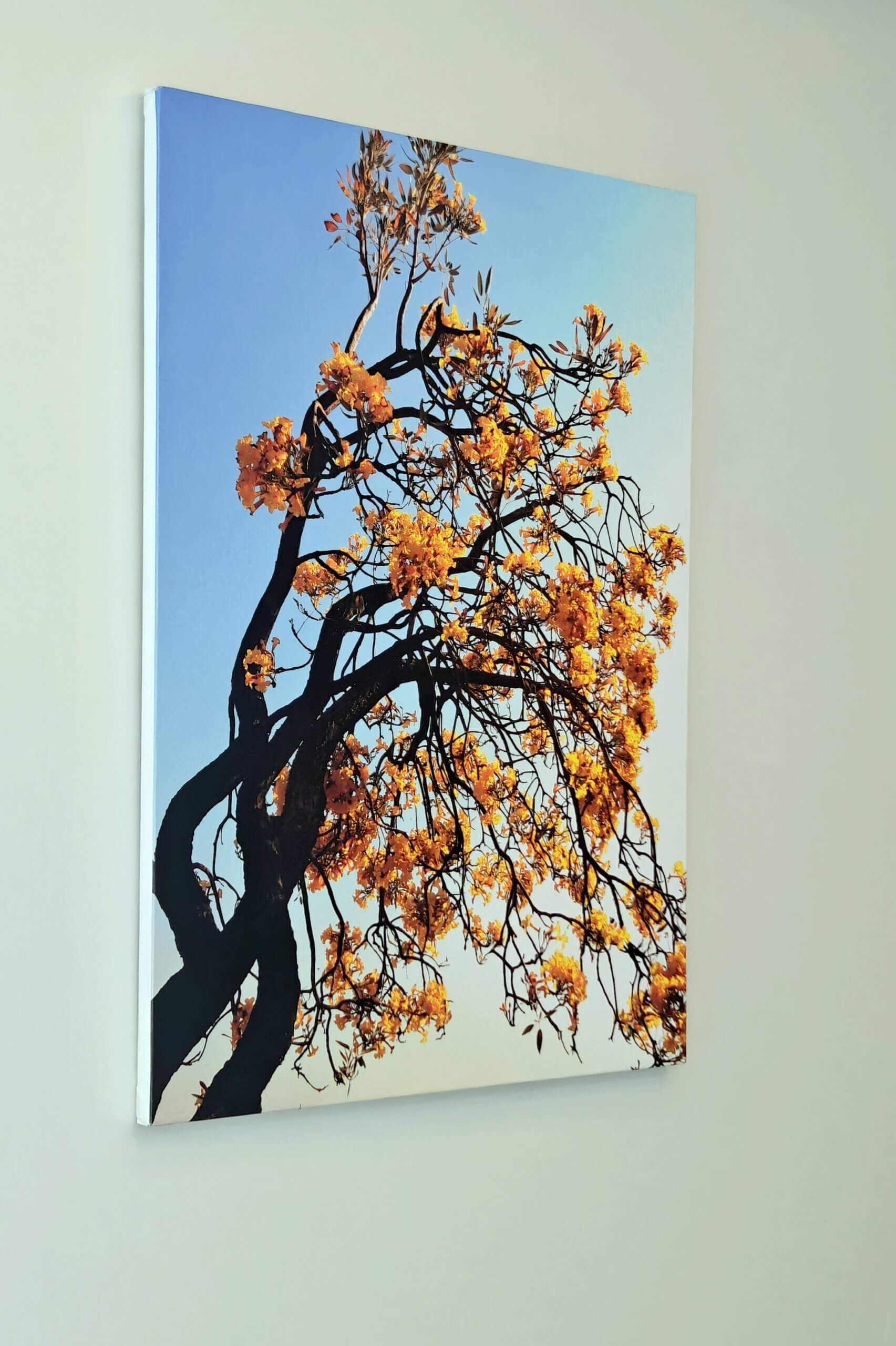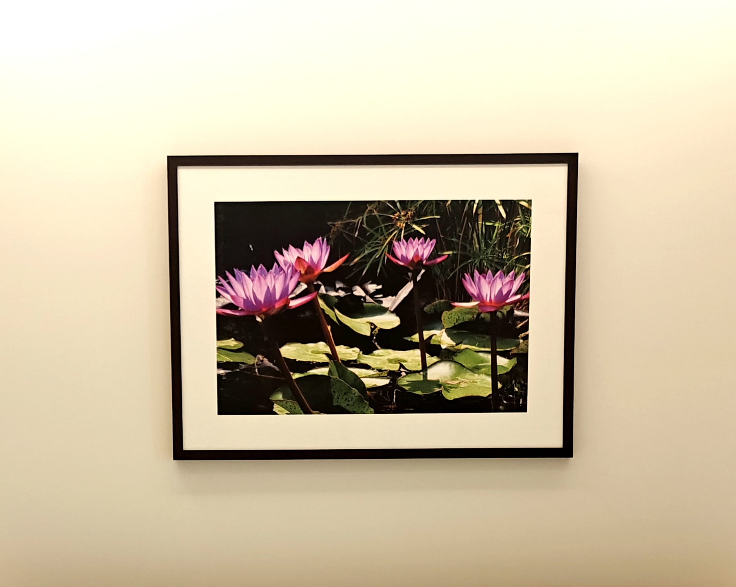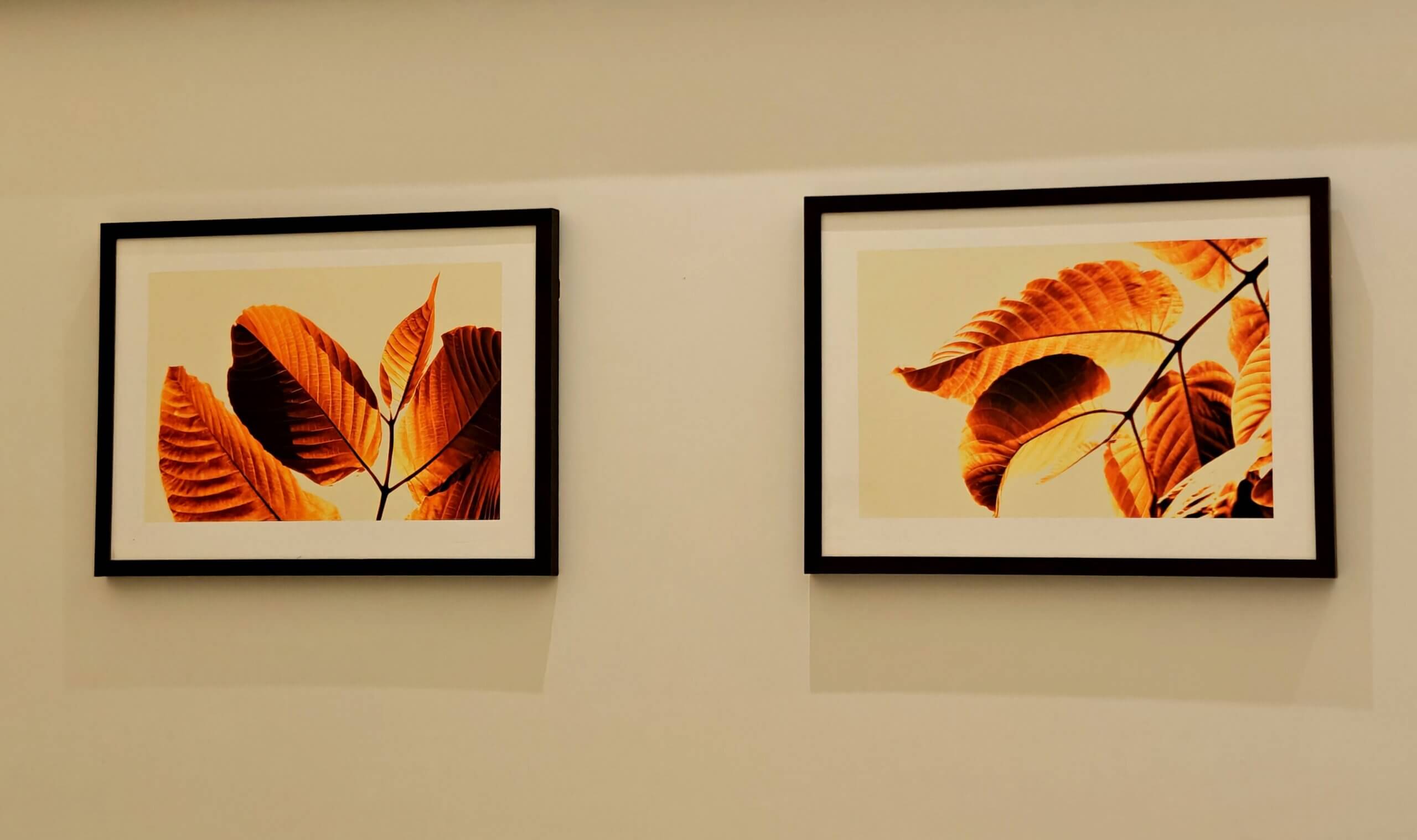 The living room, staircase, and all bedrooms have been enhanced with carefully chosen visual art themes that complement the character of each space. In the living room, canvas compositions of green plants create a refreshing atmosphere while harmonizing with the interior colour scheme and ambience. The staircase is adorned with a frameless canvas composition of palm leaves, giving it the appearance of a large contemporary painting.